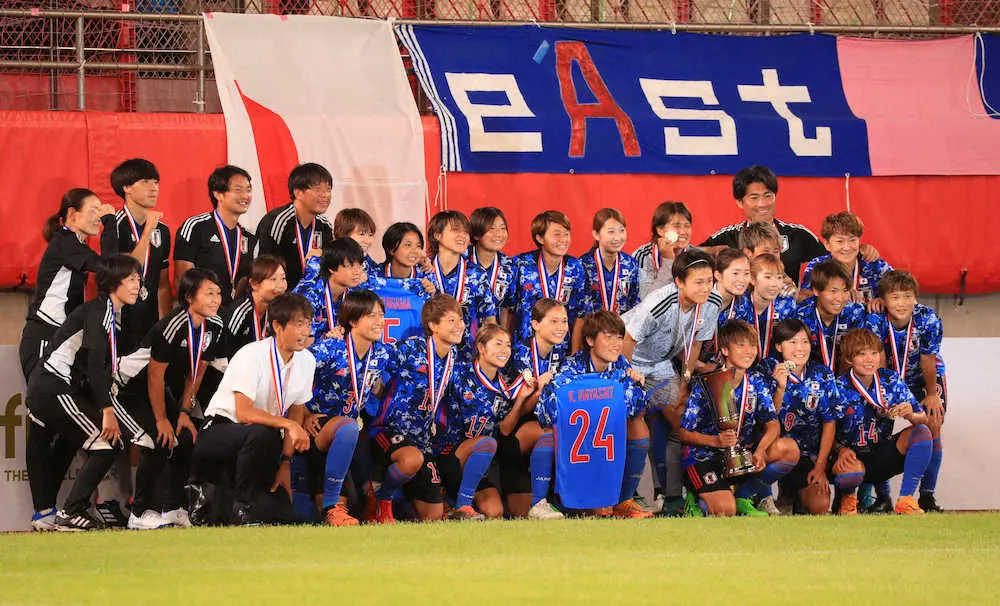 東アジアE―1選手権2連覇を果たし、大喜びの女子日本代表ら(C)JFA Photo by 共同 なでしこ E-1選手権連覇、池田監督初タイトル「日本開催で達成できてう… ギャラリーで見る この記事のフォト 2022年07月27日の画像一覧 もっと見る 2022年07月27日の画像をもっと見る
