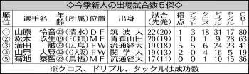 他にもG大阪FW山見(関学大)、川崎FのDF佐々木(流通経大)らも先発出場が多く、結果を残している。スタメンを勝ち取り、試合に出続けることは簡単ではない。成長途上のルーキーたちの今後の飛躍に期待したい。(データ提供・データスタジアム)