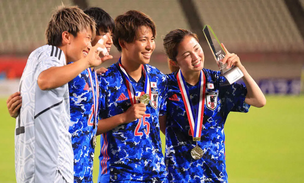 主将を任された26歳のサイドバック・清水が大会MVPを受賞した。19日の韓国戦に続きフル出場。堅守だけでなく、持ち味の果敢な駆け上がりで攻撃のアクセントとなり、存在感を発揮した。「引き分けでも優勝できてうれしい。苦しい時間帯で失点しないようにやっていた。苦しい試合でも勝ちだったり、タイトルにつなげられたのが一番の収穫」と優勝を喜んだ。