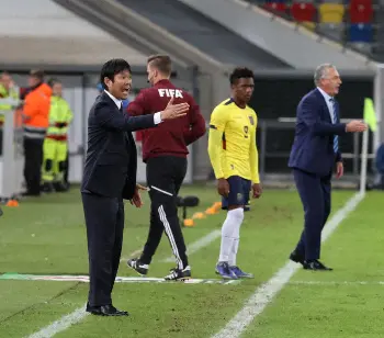 試合が開始され、0―0の前半13分、エクアドルの右サイドからの突破を止めた日本代表。ボールを奪い態勢を立て直そうと自陣でパス回しをしていると、スタンドがざわついた。中盤にいた日本代表選手たちが振り返り、センターサークルを指差した。そこでは再びスプリンクラーが誤作動を起こし、水が噴出。試合が一時中断となり森保監督は苦笑い。その1分後にも誤作動を起こす場面があったが、エクアドル選手が踏みつけて止めていた。