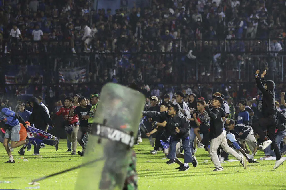 騒然となったインドネシアのカンジュルハン・スタジアム(AP) Photo by AP インドネシアのサッカーの試合で大暴動 129人が死亡する惨事 スタジアム… ギャラリーで見る この記事のフォト 2022年10月02日の画像一覧 もっと見る 2022年10月02日の画像をもっと見る
