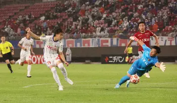 試合は前半21分、FW三平にゴールネットを揺らされるもオフサイドの判定。命拾いをするも、同37分に失点。DF浦上からのロングボールを、今度は絶妙のタイミングで飛び出したFW宮崎にDFラインの裏を取られ、GKクォン・スンテが1対1で交わされ先制ゴールを奪われた。