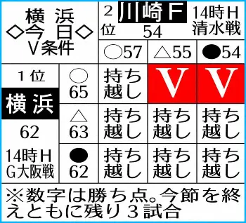 横浜 勝利して2位川崎F引き分け以下で優勝決まる!8日G大阪戦