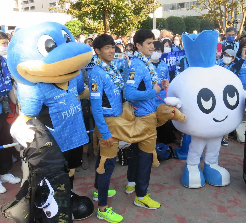 多少の呼吸のしづらさや鼻血が出るなどの症状はあるが、プレー自体には問題がないという。「やれと言われたらできる。そこは怖さ次第。あまり気にはしていない」とキッパリ。約1000人のサポーターが集結した壮行会の壇上では、山根から「(鼻を負傷して)ちょっとは男前になったんじゃないですか」といじられ、「いや、元々ね!」と爽やかに切り返していた。