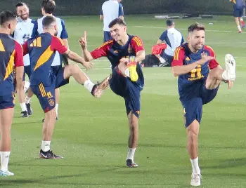 カタール入り後、初練習するスペインのペドリ(右から2人目)ら Photo by 共同 スペイン 負傷ガヤに代わり19歳DFバルデ招集 さらに若返り平均年齢25・3歳 ギャラリーで見る この記事のフォト 2022年11月20日の画像一覧 もっと見る 2022年11月20日の画像をもっと見る