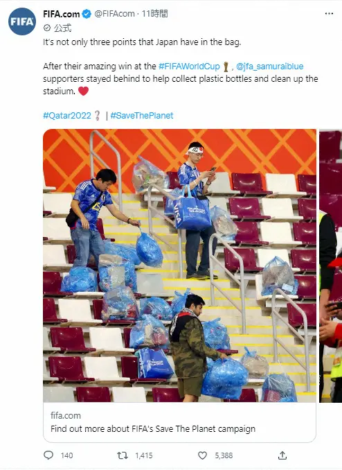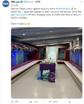 FIFA公式ツイッター(@FIFAcom)から Photo by スポニチ 日本代表「試合後ロッカー」国内外で大反響 きれいに整頓、折り鶴とあり… ギャラリーで見る この記事のフォト 2022年11月24日の画像一覧 もっと見る 2022年11月24日の画像をもっと見る