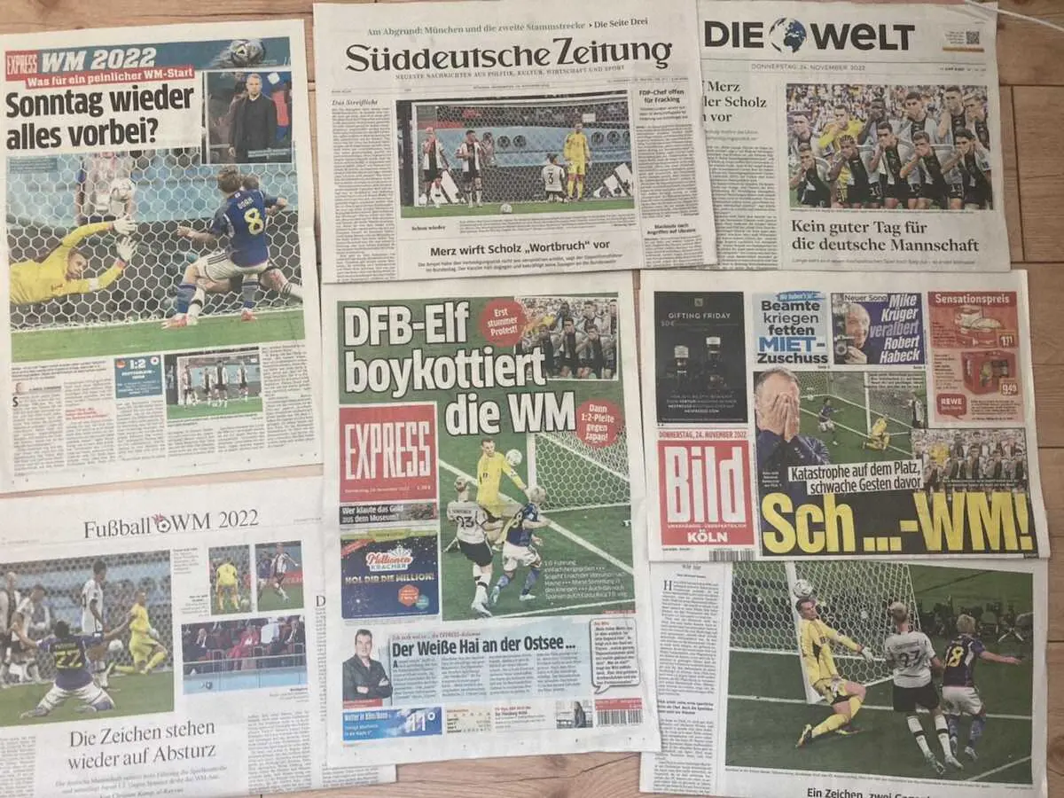 日本に敗れて2大会連続の黒星スタートとなったドイツの地元メディアは、敗戦を「衝撃の逆転負け」「恥さらし」などと酷評した。