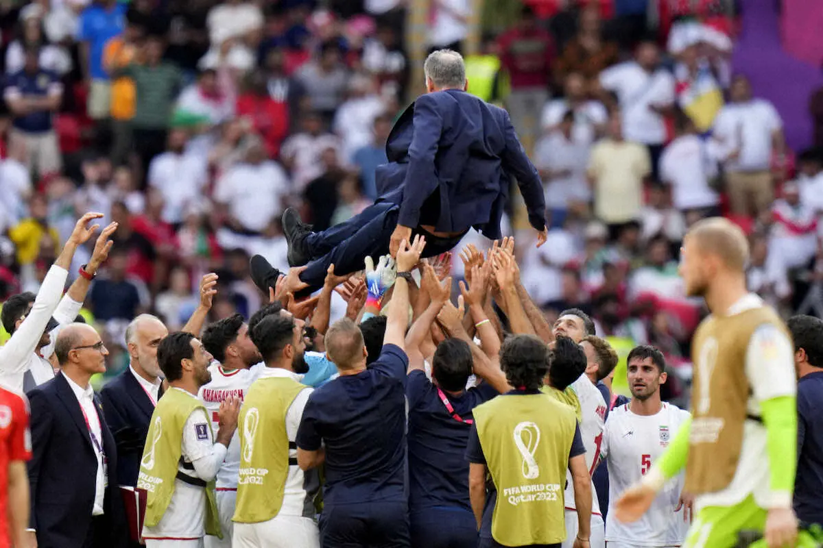 <ウェールズ・イラン>勝利して喜び爆発させるイランイレブン(AP) Photo by AP まるで優勝した光景…イラン、ウェールズに劇勝で監督胴上げ アジア勢止ま… ギャラリーで見る この記事のフォト 2022年11月26日の画像一覧 もっと見る 2022年11月26日の画像をもっと見る
