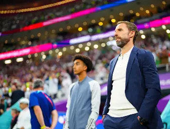 <イングランド・米国>イングランドを指揮するサウスゲート監督(撮影・小海途 良幹)