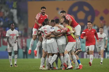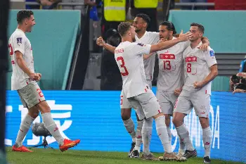 スイスがセルビアとの“プライドマッチ”を3―2で制し、3大会連続の決勝トーナメント進出を決めた。2―2の後半3分、複数人が絡む崩しから最後はMFフロイラーが左足を一閃(いっせん)。これが決勝点となり、2勝1敗の勝ち点6で1次リーグG組を2位突破した。前回大会も1次リーグで同居し、2―1でスイスが熱戦を制している。次戦は決勝トーナメント1回戦でH組1位のポルトガルと激突する。