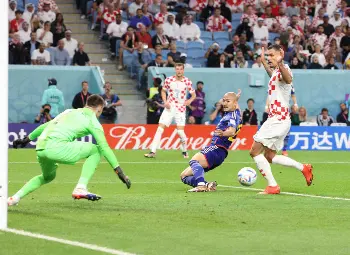 <日本・クロアチア>前半、ゴール前の前田(撮影・小海途 良幹)