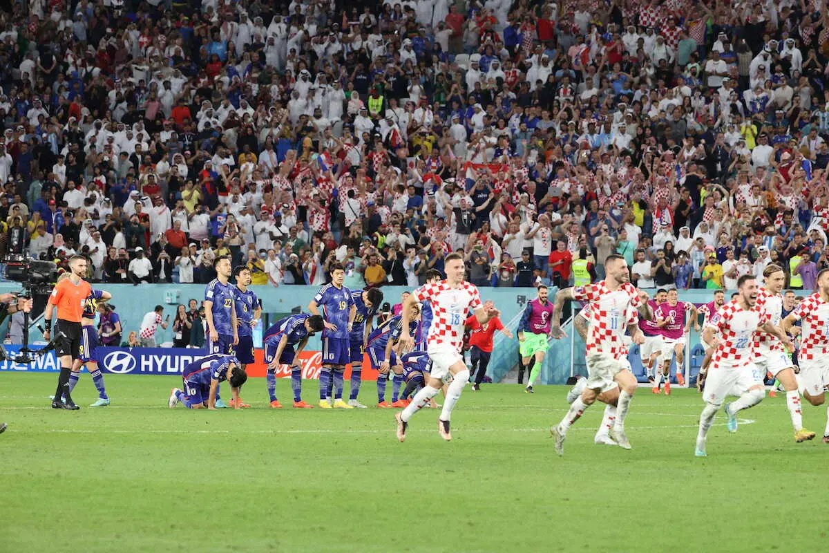 サッカーFIFAワールドカップ(W杯)カタール大会決勝トーナメント1回戦が5日(日本時間6日)に行われ、1次リーグE組1位の日本代表は同F組2位のクロアチアと対戦。延長戦でも決着はつかず、試合の行方はPK戦へ突入したが、1―3で敗れ、日本は史上初となる8強入りに届かなかった。