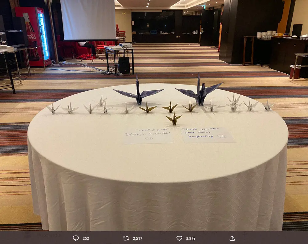 西芳照氏ツイッター(@dream24_nishi)から 試合後ロッカーだけじゃない…日本代表W杯現地宿舎にも「感謝の折り鶴」 … ギャラリーで見る この記事のフォト 2022年12月08日の画像一覧 もっと見る 2022年12月08日の画像をもっと見る