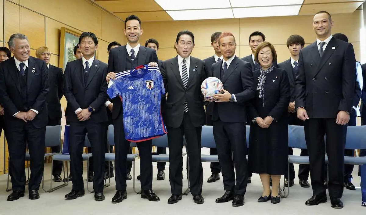 サッカーW杯カタール大会日本代表メンバーと面会し、森保一監督(左)とお互いにサインしたノートを交換して笑顔の岸田首相 Photo by 共同 森保監督が岸田首相とノート交換「これからも日本人の魂と誇りを持って戦… ギャラリーで見る この記事のフォト 2022年12月09日の画像一覧 もっと見る 2022年12月09日の画像をもっと見る