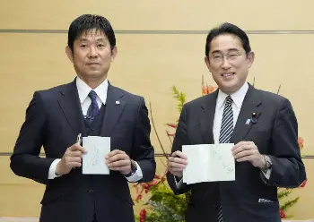 森保監督が岸田首相とノート交換「これからも日本人の魂と誇りを持って戦いたい」