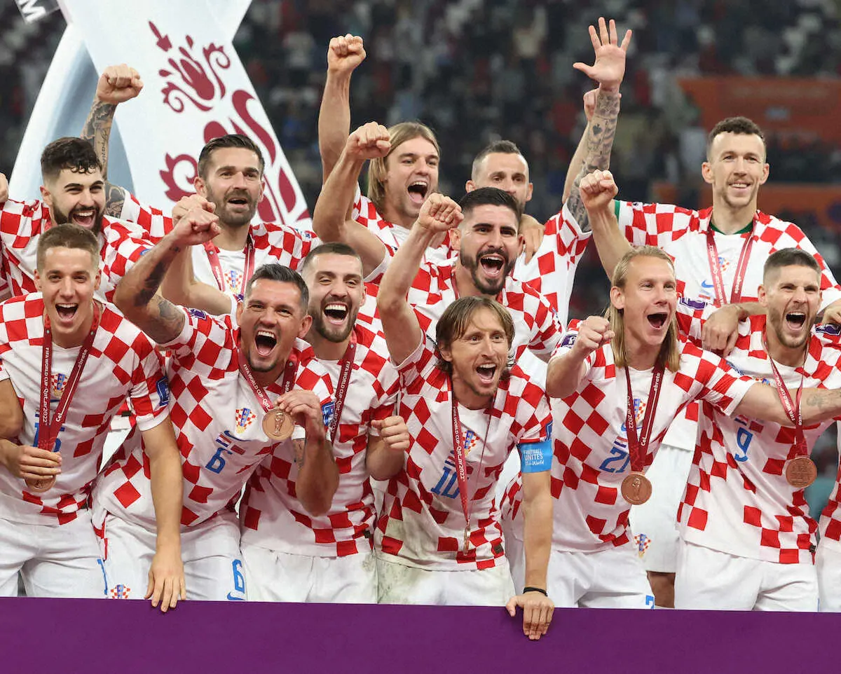 3位決定戦でクロアチアがモロッコに2―1で勝利し、初出場で3位になった98年フランス大会と準優勝した18年ロシア大会に続く3度目の表彰台に立った。前半7分にデザインされたFKからDFヨシュコ・グバルディオル(20=ライプチヒ)のヘディングで先制すると、1―1の同42分にFWミスラブ・オルシッチ(29=ディナモ・ザグレブ)が決勝ゴール。主将のMFルカ・モドリッチ(37=レアル・マドリード)は得点こそなかったが、ピッチを縦横無尽に走り回ってチームを支えた。