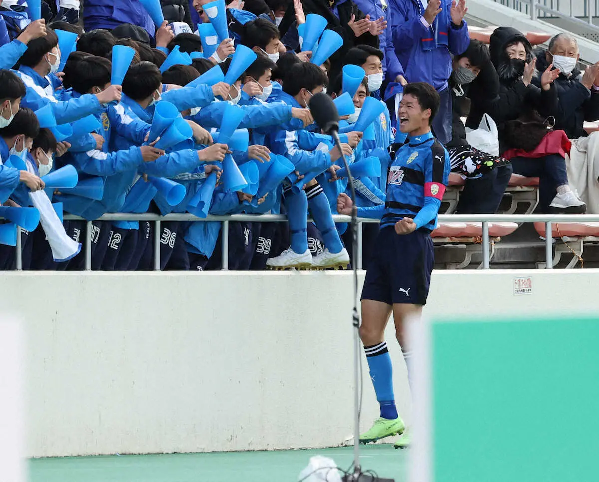 今大会初戦だった2回戦の浜松開誠館(静岡)との試合では、硬くなりゴールを決められず、PK戦では1人目のキッカーを務めたが外して悔しさに涙していた。「負け試合だった」と振り返る。ただ、試合後に多くの励ましの連絡をもらい「助かった」と感謝。気持ちを切り替えて臨んだ日本文理戦で「自分のゴールで2点目が取れて良かった」と胸を張った。