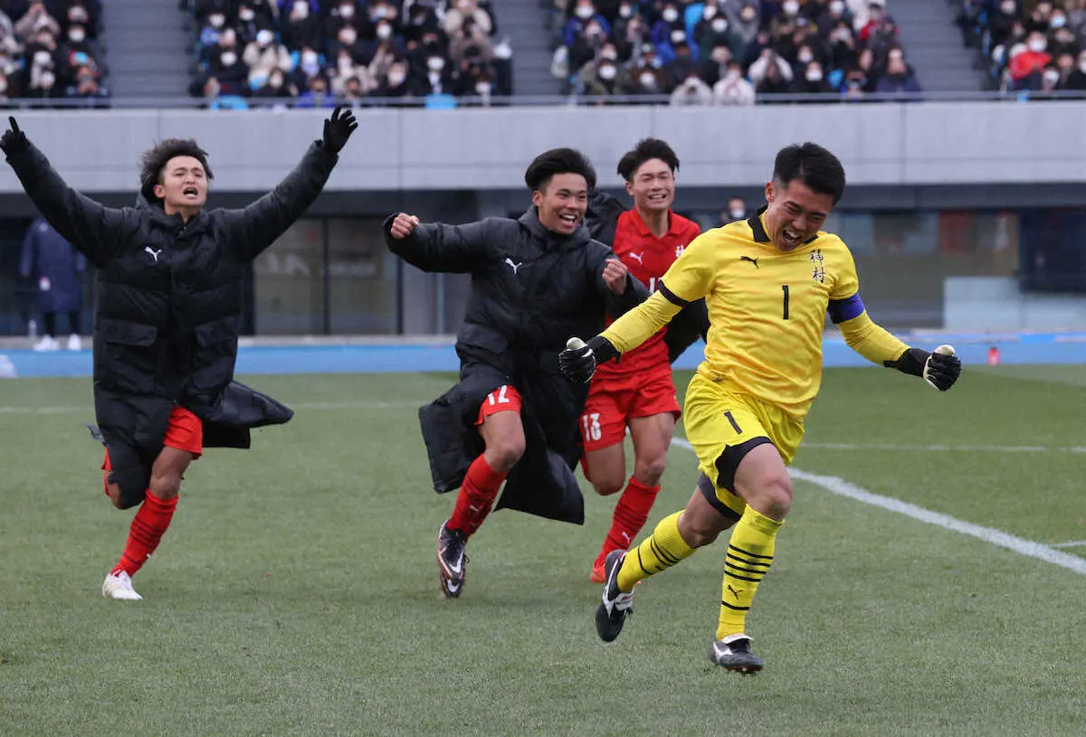 神村学園(鹿児島)がPK戦を制した。ボルシアMG(ドイツ)に加入するエースの福田師王(3年)は3番手で決めたが、試合ではノーゴールに封じられ「チームに助けられた。得点が足りない。次は自分が決めて勝たせたい」と反省。PK戦ではGK広川が相手の1本目を止めた。1番手で決めた大迫主将から「チームを助けてくれ」とキャプテンマークを渡された直後のセーブで「自分がやるしかないと思っていた」と笑った。