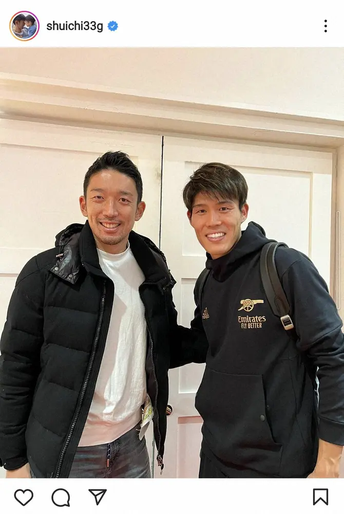 前投稿では英国・ロンドンでのショットを披露していた権田は「最高のモチベーションをもらった」と黒のアーセナルのトレーナー姿の冨安と白のインナー、黒のダウンジャケット姿の自身のショットをアップ。「このレベルを目指してもっと頑張ろう!って心から思った最高の試合だった!ありがとうトミ」とも記し、アーセナルの試合を観戦したものとみられる。