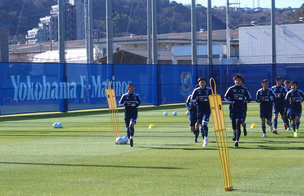 神奈川県横須賀市に完成した横浜の練習場「F・マリノススポーツパーク~トリコロールベースクリハマ~」で始動したMF喜田(左)ら横浜イレブン