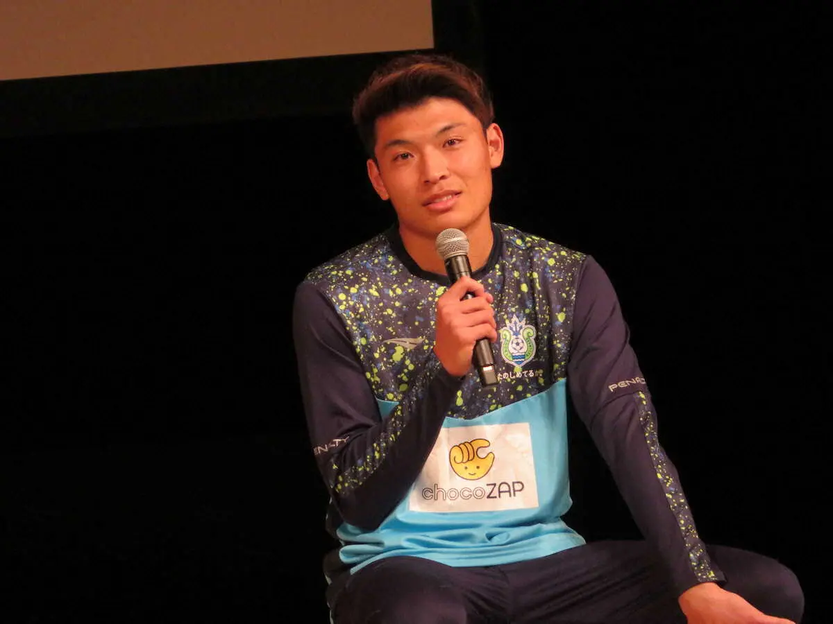 新体制発表会で年男の誓いを立てた湘南FW町野