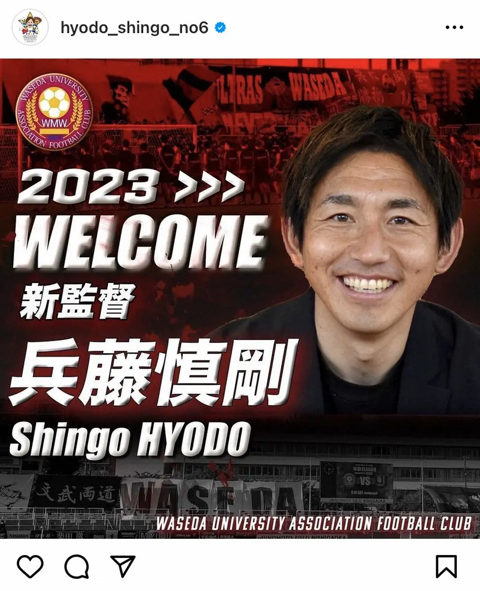 J1横浜などでプレーし、昨年現役を引退した兵藤慎剛氏(37)が22日、自身のインスタグラムを更新。2023シーズンより早大ア式蹴球部の新監督に就任すると発表した。