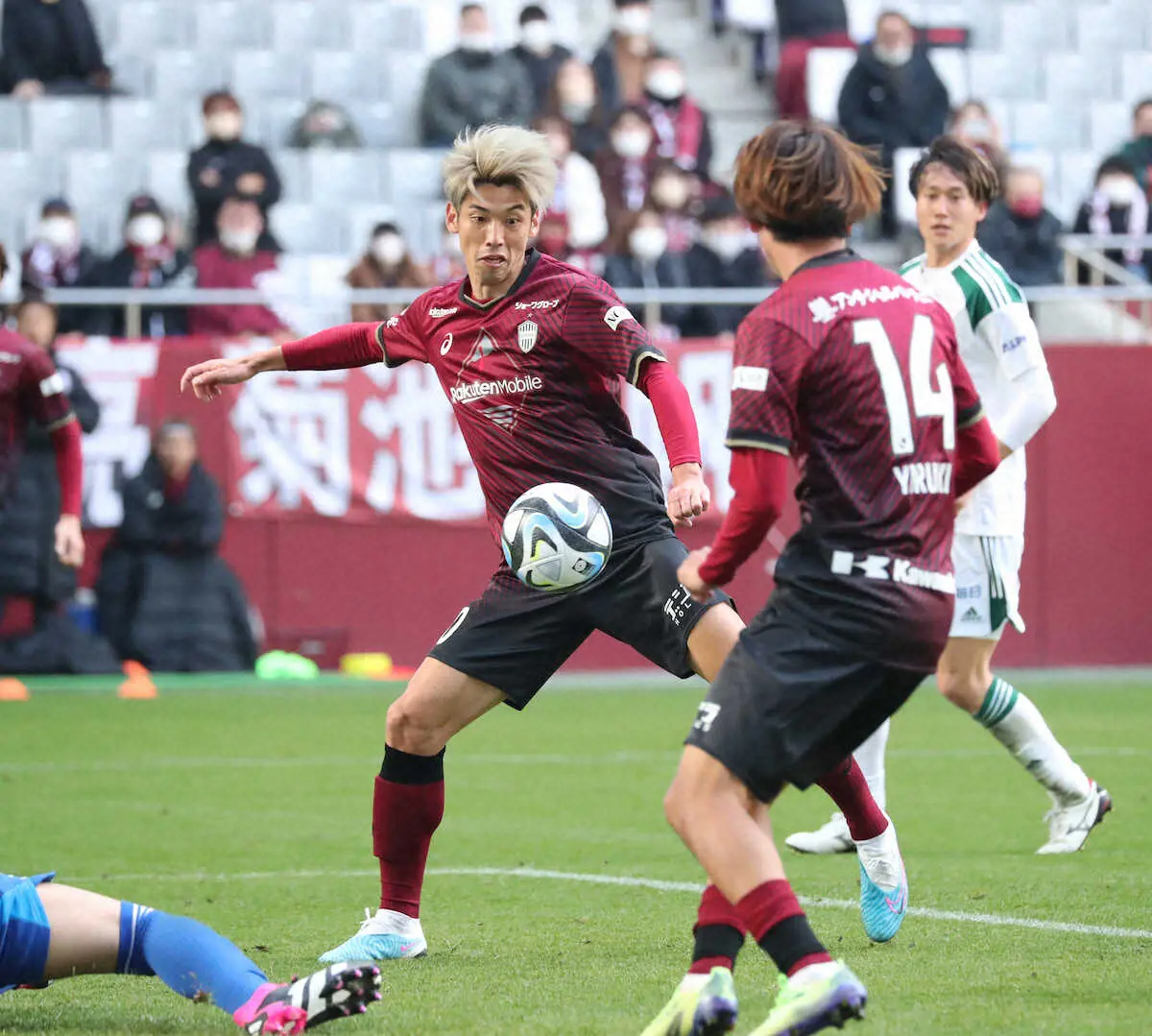 昨年は慢性的な足の負傷でリーグ26試合7得点。W杯カタール大会の日本代表メンバーからも漏れた。だが吉田監督が「キャンプから体の状態がいい。オフにしっかりトレーニングをしてきた」と評価するように、上々の仕上がりだ。欠場したMFイニエスタやDF飯野の状態に不安は残るものの、可変式の4バックにトライするなど充実の90分間。リーグ開幕・福岡戦へより連係を高めていく。