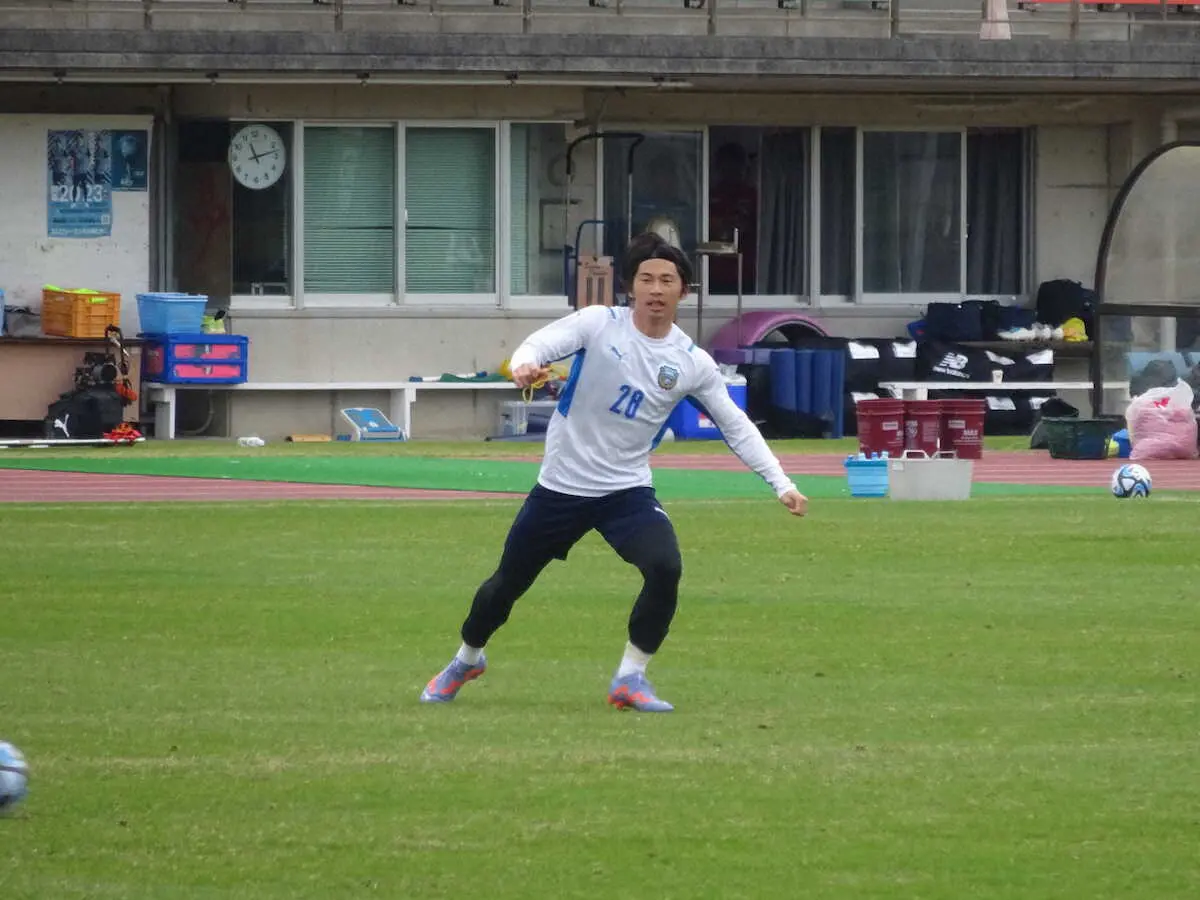 沖縄合宿最終日の4日に行った鳥栖との練習試合でプレーする川崎FのMF瀬川