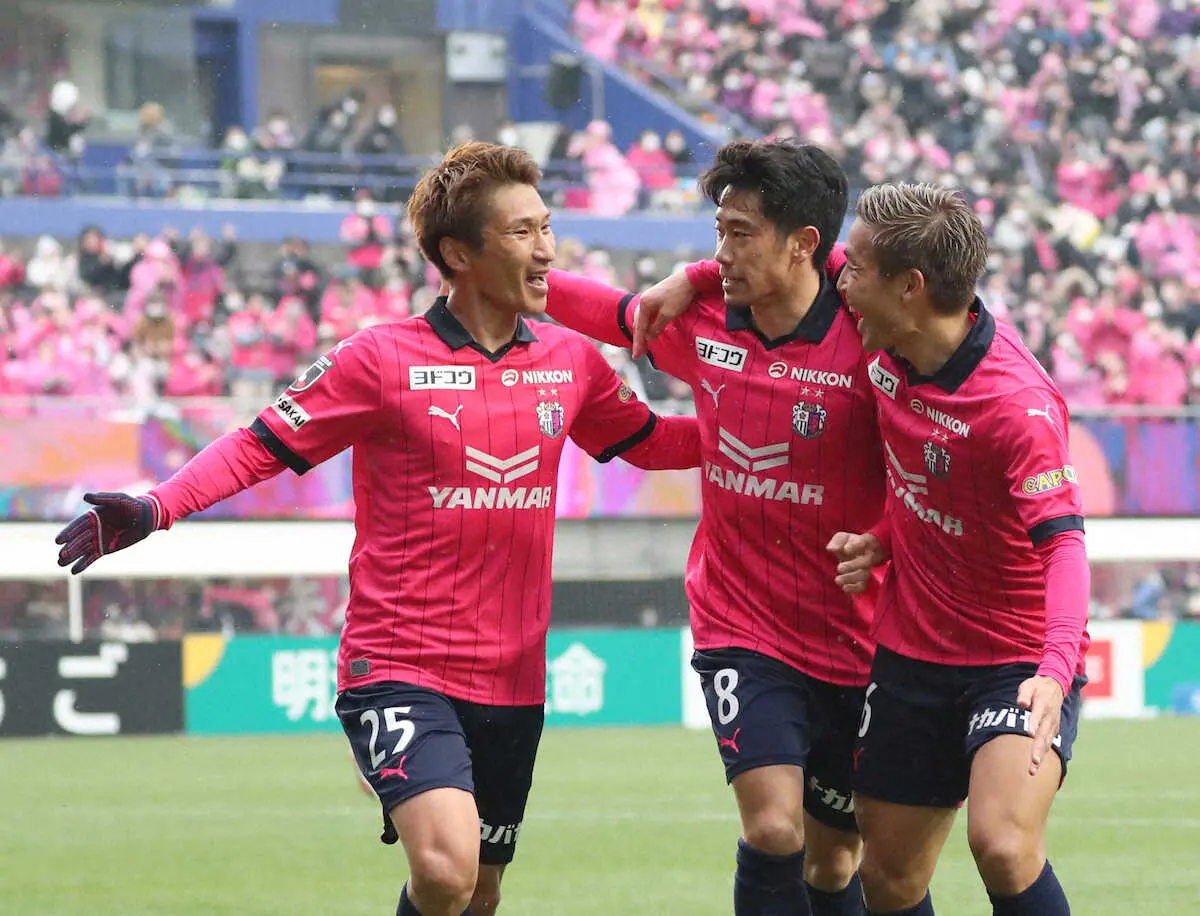 前半アディショナルタイムにゴールを決めた10年5月15日の神戸戦(長居)以来、4662日ぶりとなるJリーグのピッチ。桜色に染まったスタジアムはこの日、最高潮の盛り上がりとなった。