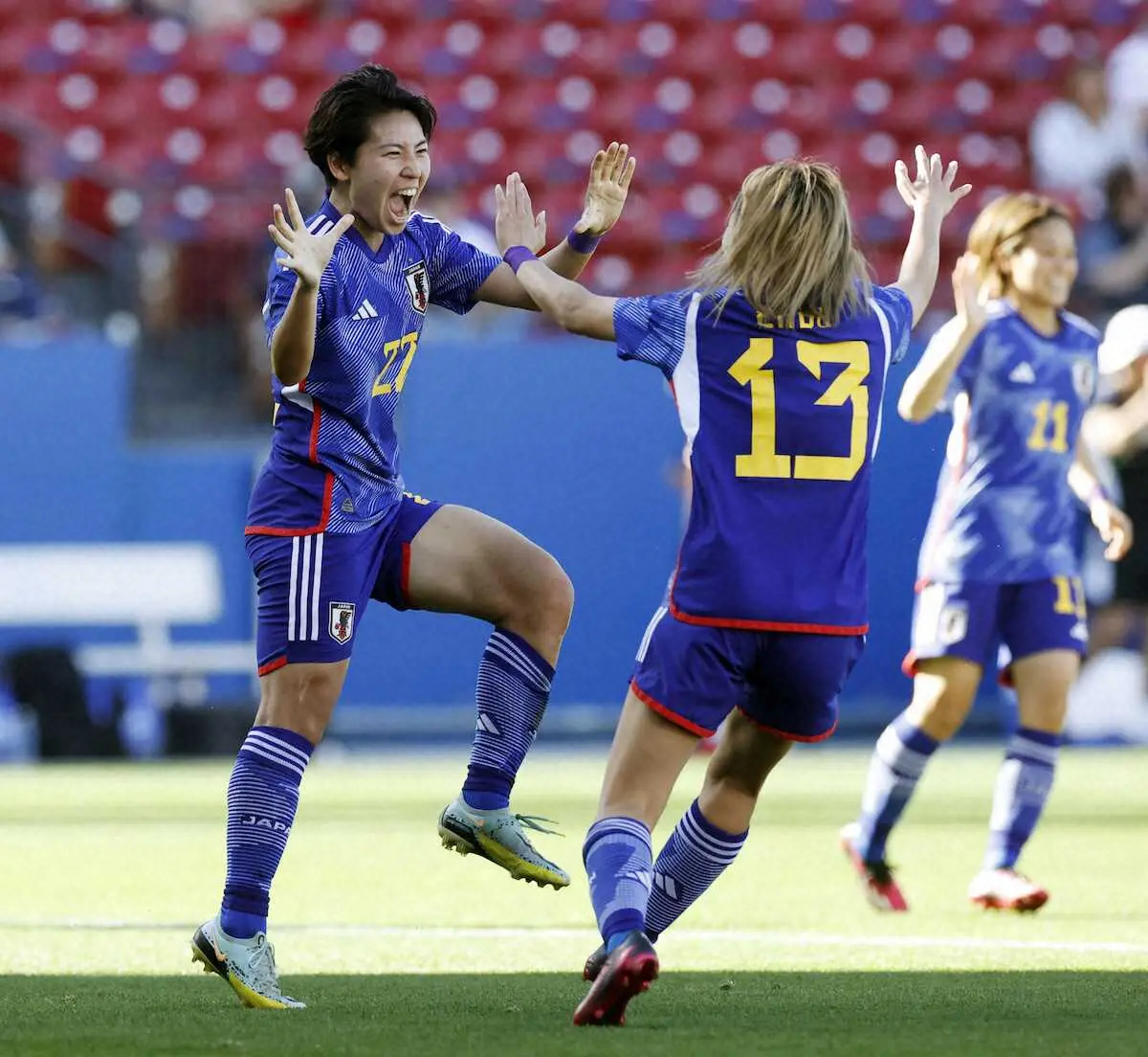 <日本・カナダ>前半、先制ゴールを決めた清家(左端)を祝福する日本ベンチの選手ら Photo by 共同 なでしこ 五輪「金」カナダに3発!完封! 3-4-3手応え 連敗4で止めた ギャラリーで見る この記事のフォト 2023年02月24日の画像一覧 もっと見る 2023年02月24日の画像をもっと見る