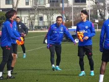 前半、ゴールを決めた横浜・アンデルソン・ロペス(右)はアシストしたエウベルのスパイクを磨くパフォーマンス(撮影・西海健太郎) Photo by スポニチ 2023年03月04日の画像一覧 もっと見る 2023年03月04日の画像をもっと見る