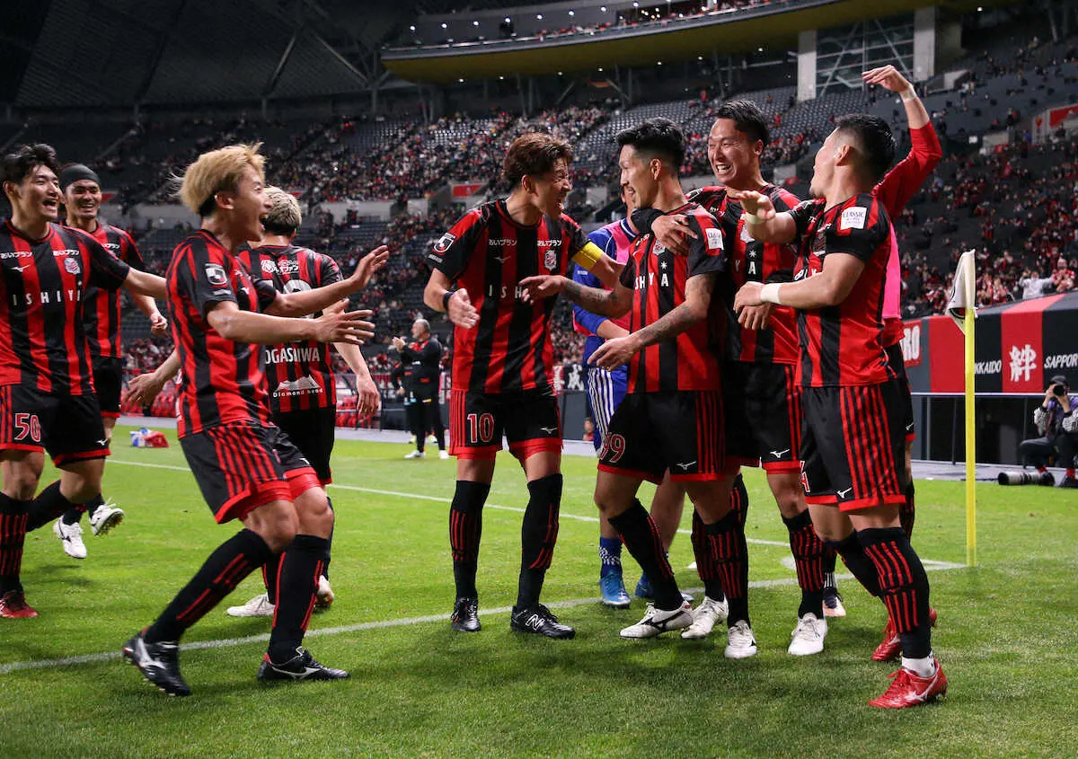 サッカーJ1札幌は12日、札幌ドームで昨季王者・横浜に2―0で快勝し、今季初勝利を挙げた。前半8分にFW小柏剛(24)の今季初得点で先制。後半32分には移籍後初先発出場の元日本代表MF小林祐希(30)が移籍後初ゴールでダメ押しした。開幕から2分け1敗で迎えた今季4戦目でようやく手にした白星。横浜相手のリーグ戦勝利は、3季ぶりとなった。