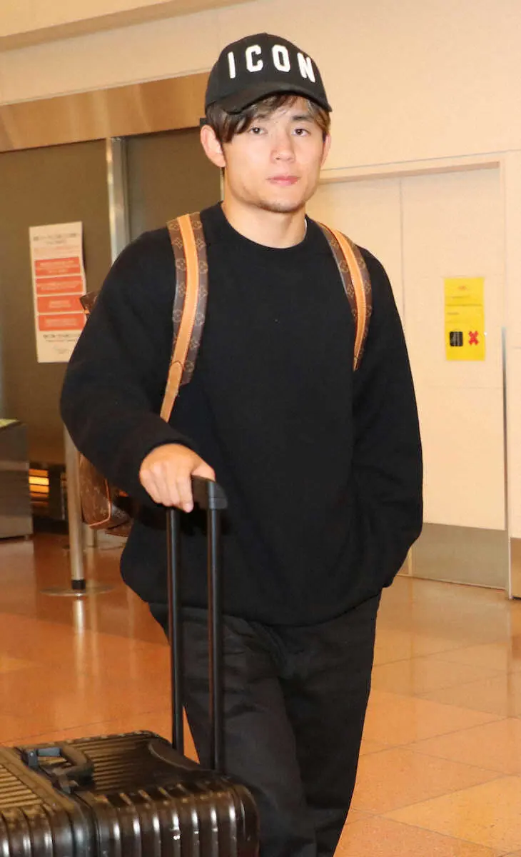 22日、帰国した久保(撮影・村上 大輔)