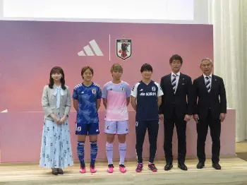 日本協会は23日、女子日本代表「なでしこジャパン」が今年7月開幕のW杯で着用するアウェーユニホームを発表した。頂点に立った11年W杯から「再び世界一へ」という決意の象徴として、日の出をコンセプトに幻想的な朝の空模様を表現。