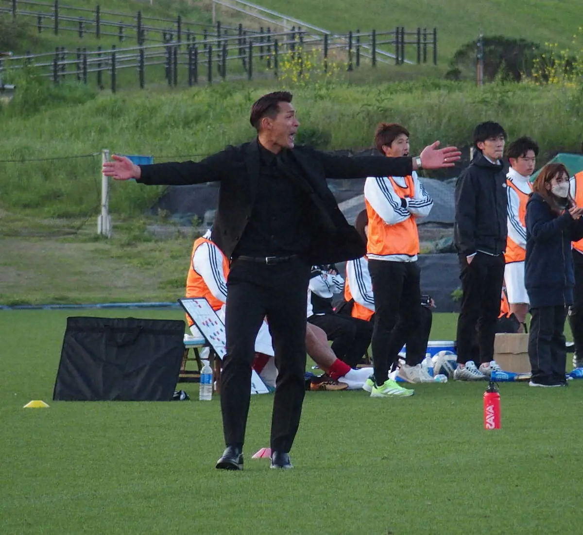 「一体感」をテーマにゴールを決めた際には選手とともに喜ぶなど、ベンチ前で積極的に選手に指示を出して奮闘。初戦を振り返り「去年と真逆のサッカーをやっている。(去年は)つなげない、怖くなったらロングボールで逃げるってやってたけど、ちゃんとボールを握るポゼッションサッカーに変えた。練習でやったことを何度も出せた。(監督として)来て1、2カ月だけど劇的に変わっている」と満足げだった。