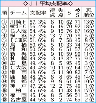 【Jトピ~データで読み解く】支配率低いチームがJ1上位に W杯から続く逆転現象