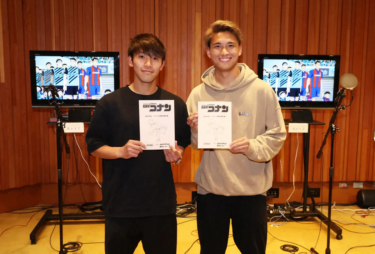 コナンの「真実はいつもひとつ!」のポーズを決める川崎F・橘田(左)とFC東京・松木(撮影・西海 健太郎) Photo by スポニチ Jリーグと「名探偵コナン」がコラボ 5・13放送回にFC東京松木玖生、川崎F… ギャラリーで見る この記事のフォト 2023年05月06日の画像一覧 もっと見る 2023年05月06日の画像をもっと見る