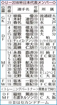 4強で本大会の切符を獲得した同アジア杯では主将としてチームをけん引。Jリーグでも実績十分の20歳は「目標は監督が掲げていた通り世界一ですけど、まずは1次リーグを勝ちきることが重要」と強調し、「世界のスカウトが見に来ると思うので、そういった人たちに注目されるようなプレーをしていきたい」と活躍を誓った。