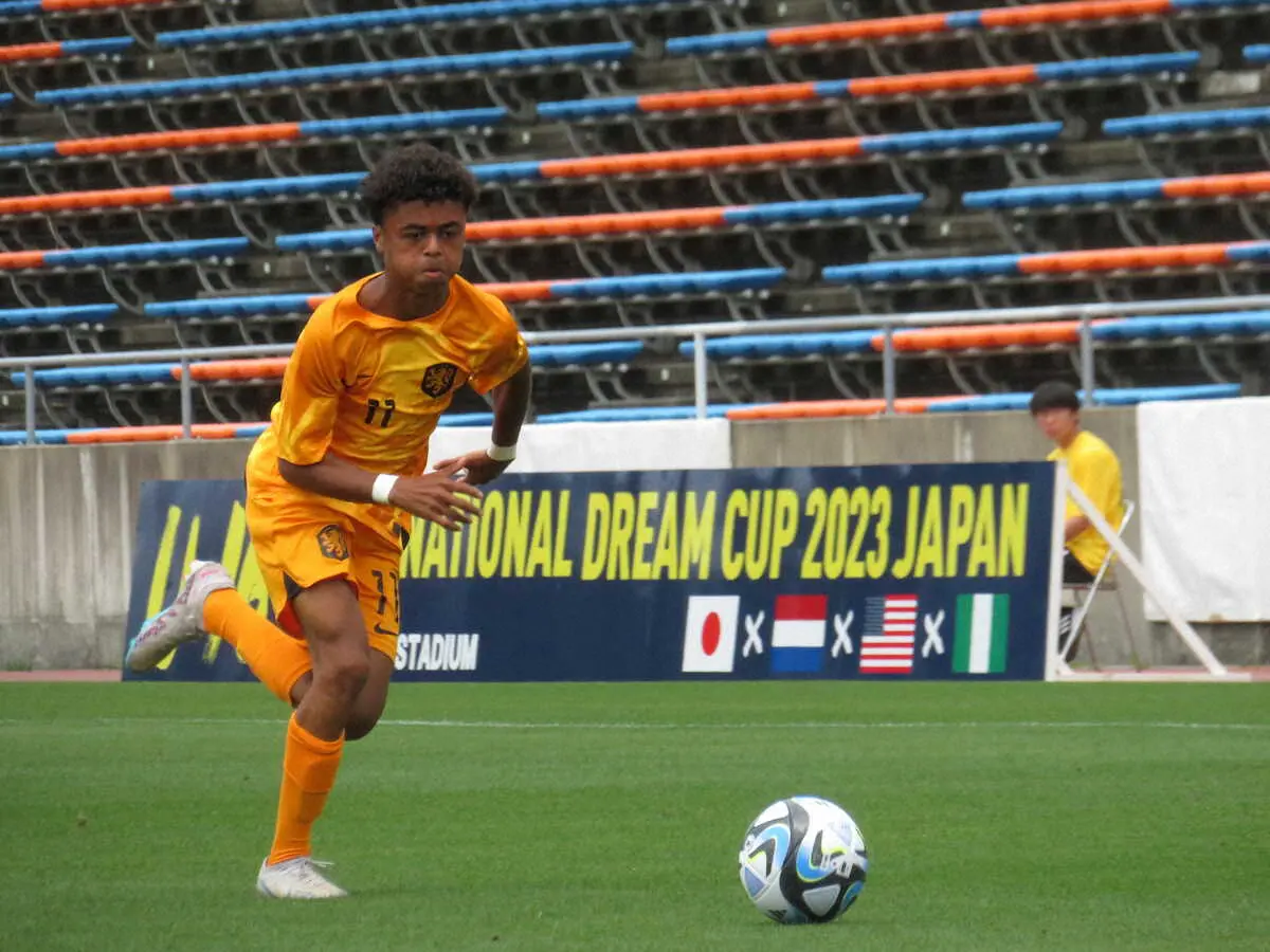 中でも注目はアヤックスやバルセロナなどで活躍した元オランダ代表FWクライファート(46)の四男でU―16オランダ代表のシェーン・クライファート(15=バルセロナ)だ。開幕戦となったU―16ナイジェリア戦に左ウイングとして先発出場、1―0の勝利に貢献した。試合後に取材に応じたシェーンは「試合に勝てたのはチームメートのおかげ」と振り返った。