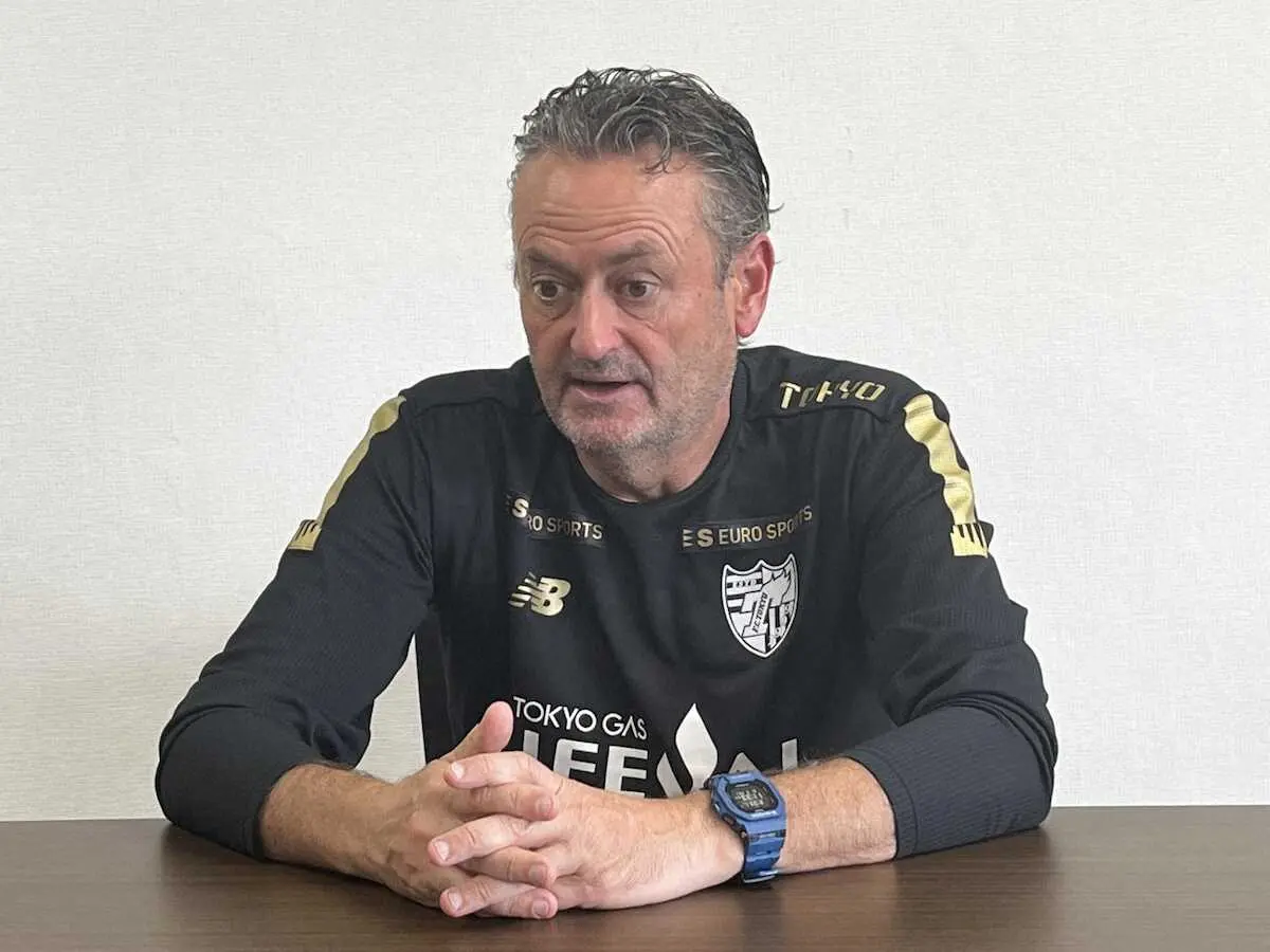 3日のホーム横浜戦に向けて、前日練習後に取材対応するFC東京のアルベル監督