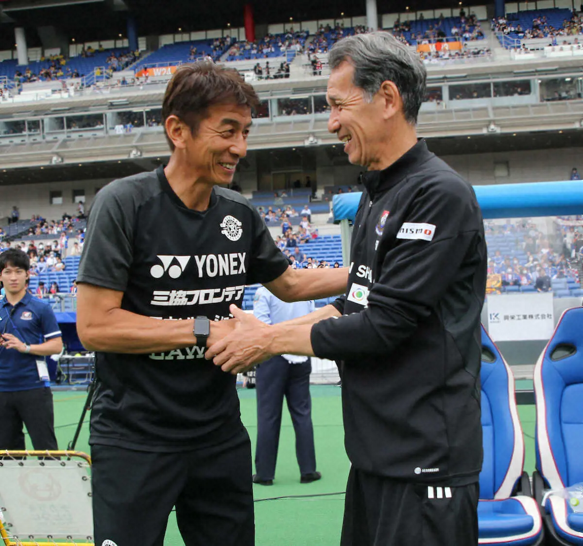 <横浜・柏>後半、横浜の選手たちの横で指示を出す柏・井原監督(右)(撮影・西海健太郎) Photo by スポニチ 柏がアディショナルタイムに2失点で井原監督の初勝利はお預け「悔しいし申… ギャラリーで見る この記事のフォト 2023年06月10日の画像一覧 もっと見る 2023年06月10日の画像をもっと見る
