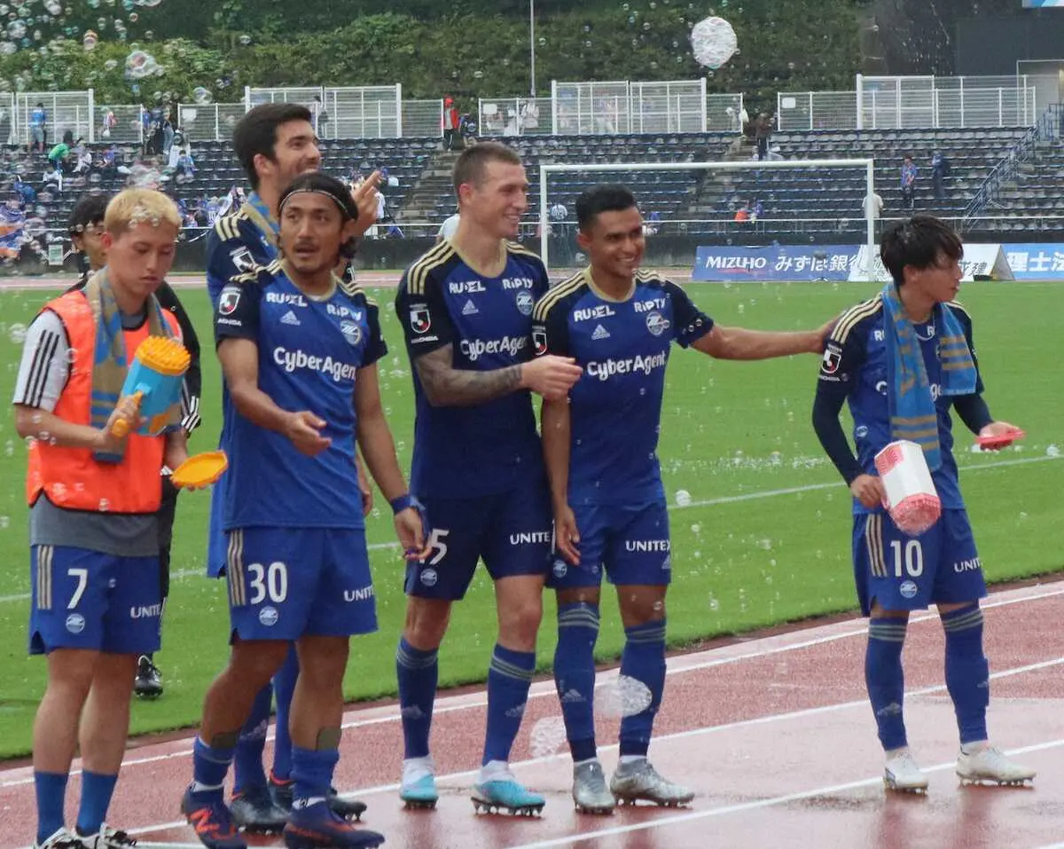 <町田・長崎>後半、2点目を決めた町田FWデューク(右)はアシストのエリキと抱き合って喜ぶ Photo by スポニチ J2首位の町田が止まらない!!強力二枚看板デューク&エリキが豪華2発競演 ギャラリーで見る この記事のフォト 2023年06月11日の画像一覧 もっと見る 2023年06月11日の画像をもっと見る