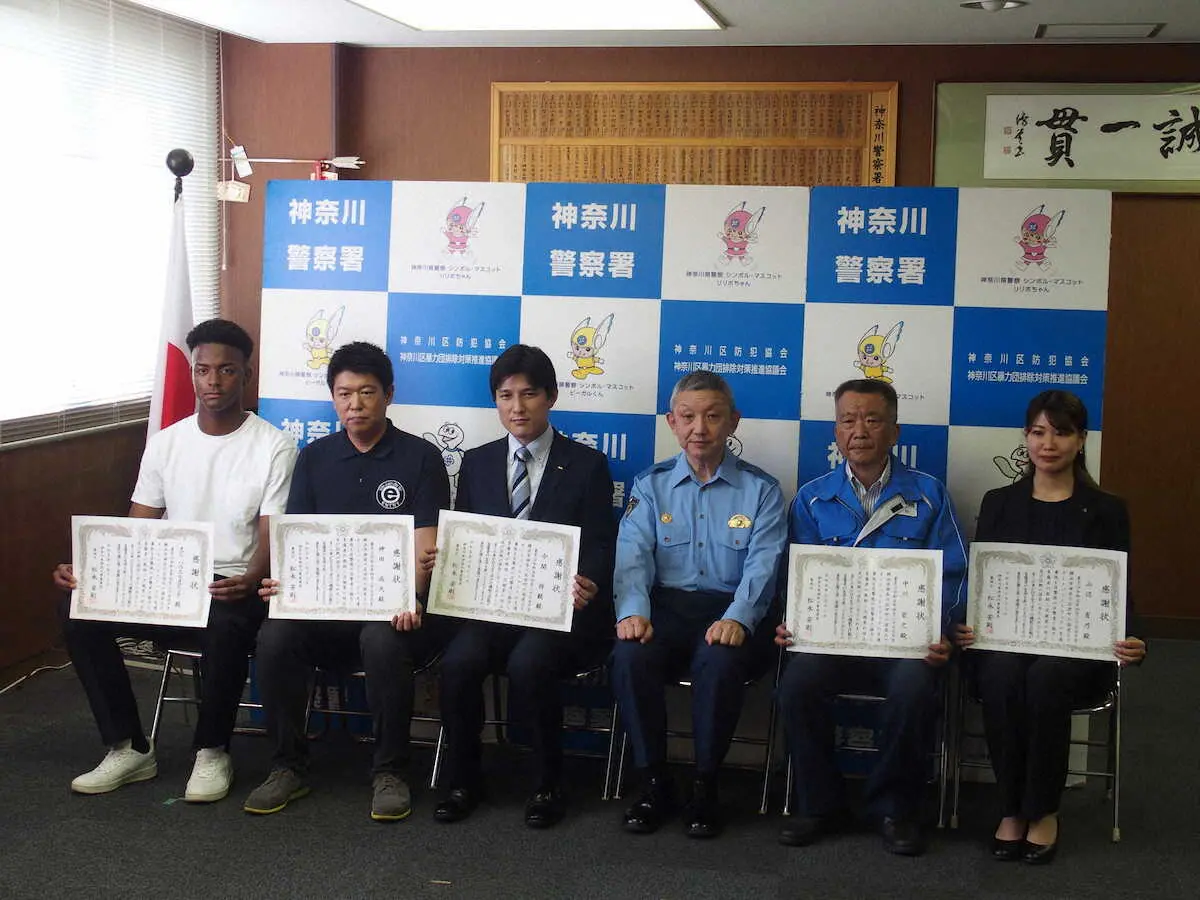 交通事故の救助対応を行い、神奈川警察署から感謝状を受け取った横浜GKオビ Photo by スポニチ 横浜GKオビ 人命救助で神奈川署から表彰 5人の連携プレーで二次被害スト… ギャラリーで見る この記事のフォト 2023年06月13日の画像一覧 もっと見る 2023年06月13日の画像をもっと見る