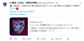 サッカーJ1・FC東京 サポーターの問題行為を報告 花火使用や生卵投げつけなどの器物損壊