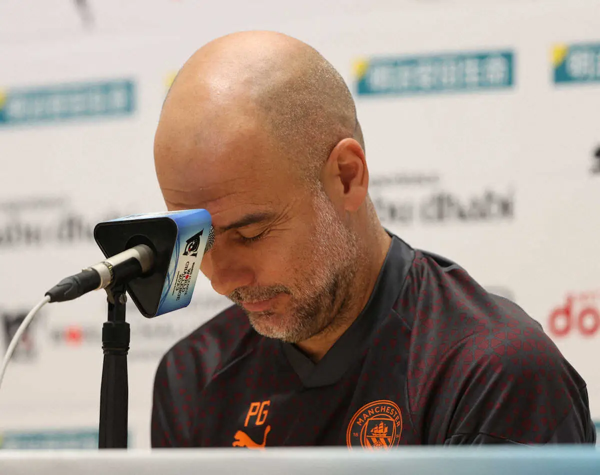マンチェスターCのグアルディオラ監督が横浜と対戦する23日の親善試合に向けた前日会見を会場の国立競技場で行った。