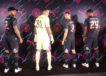イングランド・プレミアリーグ王者で昨季欧州CLなど主要3冠を達成したマンチェスターCが25日、プーマストア原宿キャットストリートで2023―24シーズンのサードユニホームを発表した。