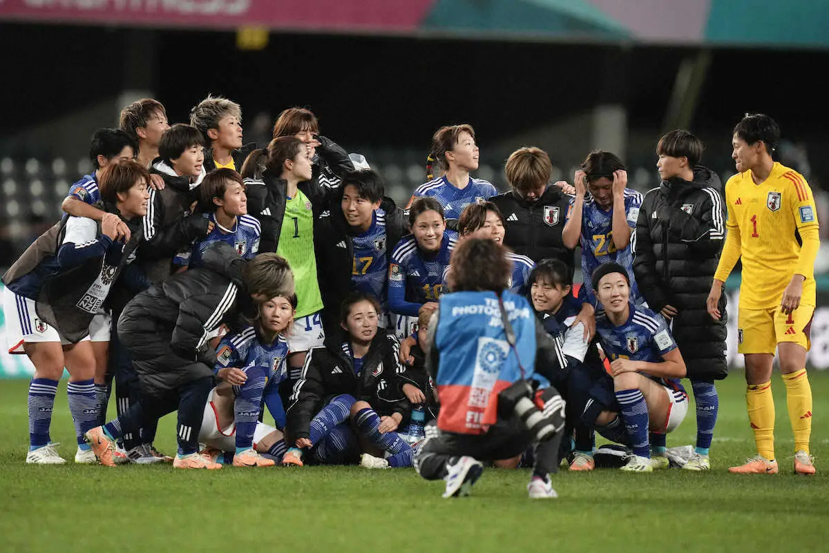 コスタリカに2―0で勝利し、ピッチで撮影に応じるなでしこイレブン(AP)