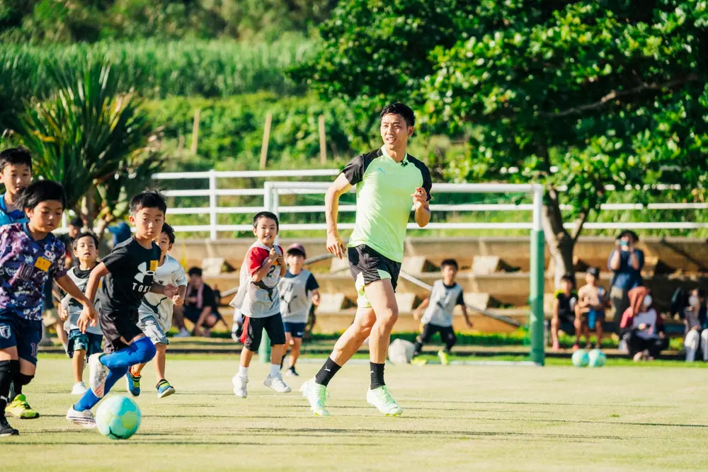 さらに、島の子供たちのためにサッカー教室を開催した。1対1でのボールの奪い合いにめっぽう強い「デュエル王」と称される遠藤に、地元の子供たちが挑戦。真っ向から受けて真剣勝負を展開し、子供たちは世界トップクラスの技を目の当たりにして大興奮の様子だった。ミニゲームを通して交流を図り、「みんなとボールを蹴れて楽しかった。みんな上手いなと思ったのでこれからもサッカー頑張ってほしい」とエールをおくった。