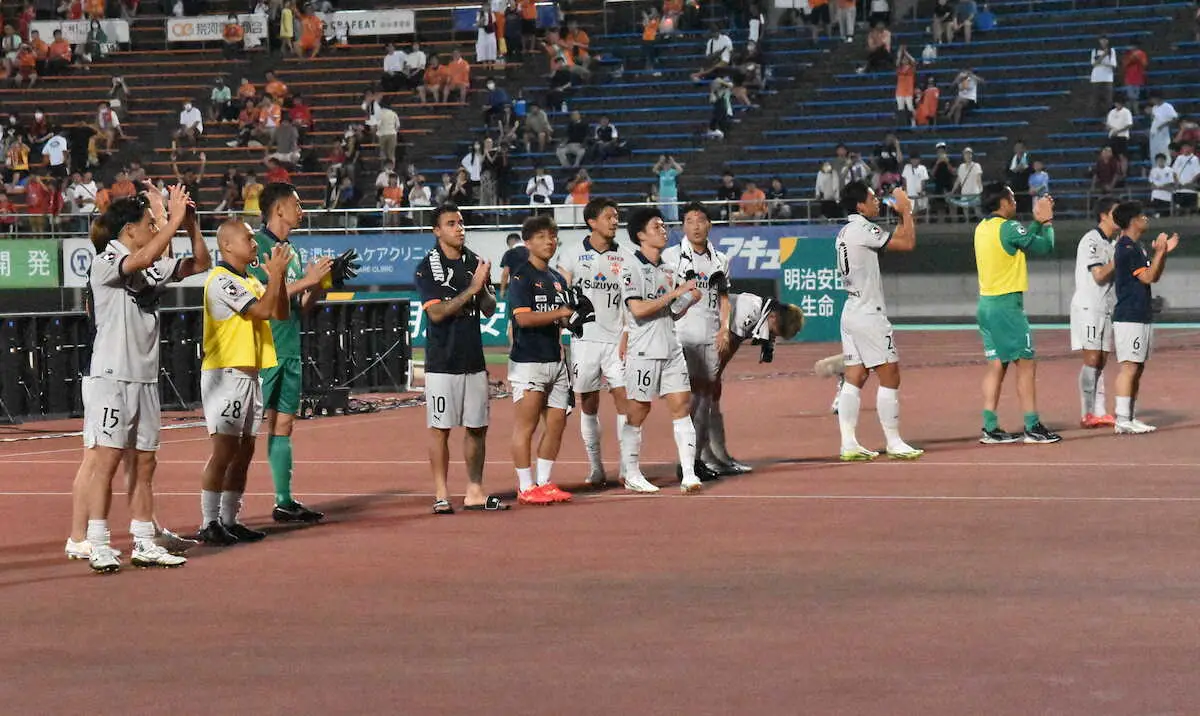 ここ3試合無得点で勝利がなく、勝ち点68。清水は金沢に3―0で快勝し、同63で磐田を抜いて2位に上がった。