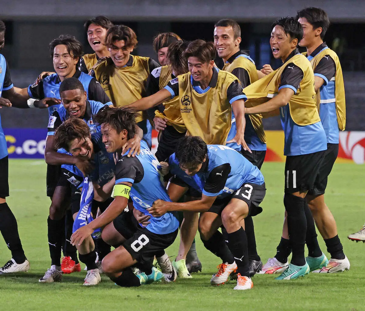 <川崎F・蔚山>後半、ゴールを決め喜ぶ川崎F・橘田(手前8)(撮影・西海健太郎)